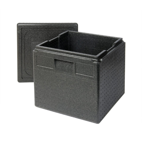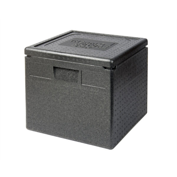 The Thermo Future Box PIZZA is made of robust EPP and holds pizza and cake boxes up to 35 x 35 cm. This pizza box is equipped with ergonomic handles on the outside and with internal openings for easy insertion and removal of pizza or cake boxes.