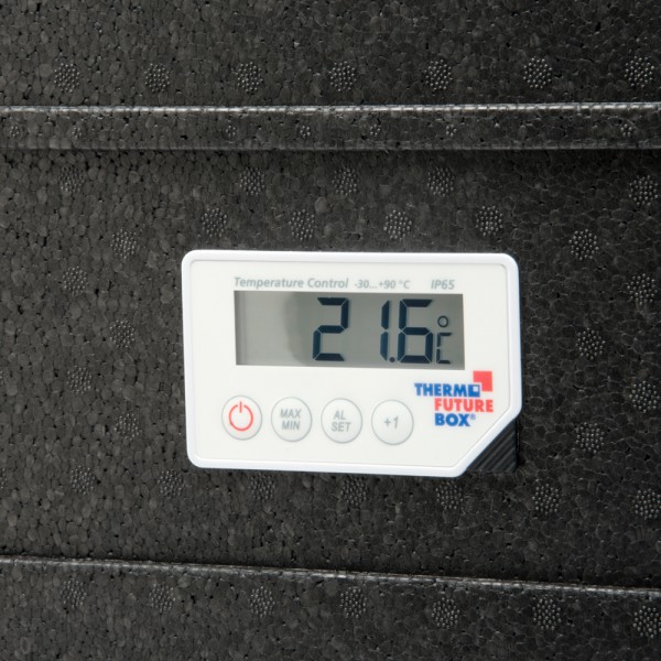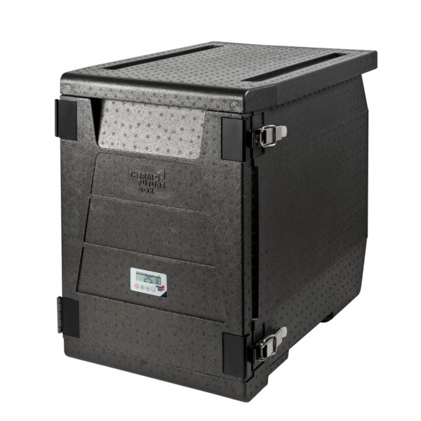 Κουτί μεταφοράς και μόνωσης από EPP ΜΕ ΨΗΦΙΑΚΟ ΘΕΡΜΟΜΕΤΡΟ και όγκο 93 λίτρων για την εμπρόσθια φόρτωση πολλών δοχείων gastronorm (1/1, 1/2, 1/3) και Cool Pack ή Hot Pac.