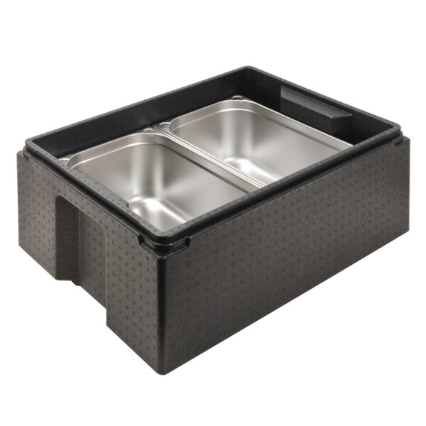 Το κουτί Euronorm 2/1 είναι τέλειο για τη μεταφορά και τη μόνωση κουτιών EPP με διαστάσεις Euronorm. Αυτό το κουτί εξοικονομεί χώρο και στοιβάζεται με THERMO FUTURE BOX GN 1/1 ή EN 1/2. Έχει εξωτερικές διαστάσεις 60 x 80 cm (Euronorm 2/1), έτσι δύο κομμάτια ταιριάζουν τέλεια το ένα δίπλα στο άλλο σε μια παλέτα Euro. Το κουτί έχει χωρητικότητα 97 λίτρων και δύο πολύ μεγάλες εργονομικές λαβές για εύκολη μεταφορά αυτού του μεγάλου μεγέθους κουτιού.