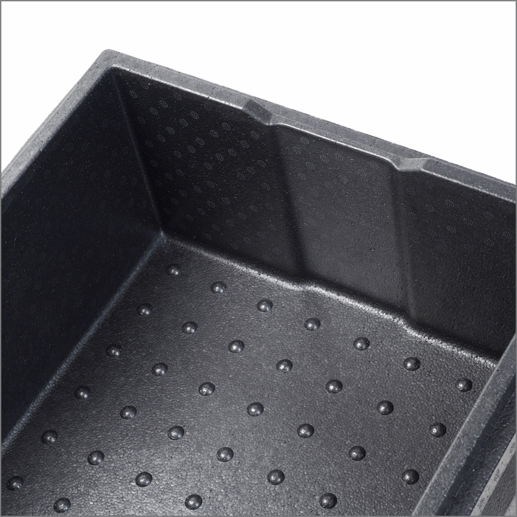 Το Thermo Future Box PIZZA είναι κατασκευασμένο από στιβαρό EPP και χωράει κουτιά πίτσας και κέικ έως 35 x 35 cm. Αυτό το κουτί πίτσας είναι εξοπλισμένο με εργονομικές λαβές στο εξωτερικό και με εσωτερικά ανοίγματα για εύκολη εισαγωγή και αφαίρεση των χαρτοκιβωτίων πίτσας ή κέικ.